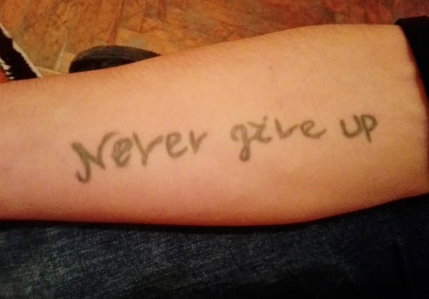 „Ezek azt mondják nekem, hogy soha ne adjam fel, hogy higgyek az életben. Ha valami csalódás ér, erre gondolok. Ezek tartják bennem az erőt” – jelenti ki magabiztosan egy fiú, és érződik a szavain, hogy tényleg segítenek neki a feltetováltatott mondatok.