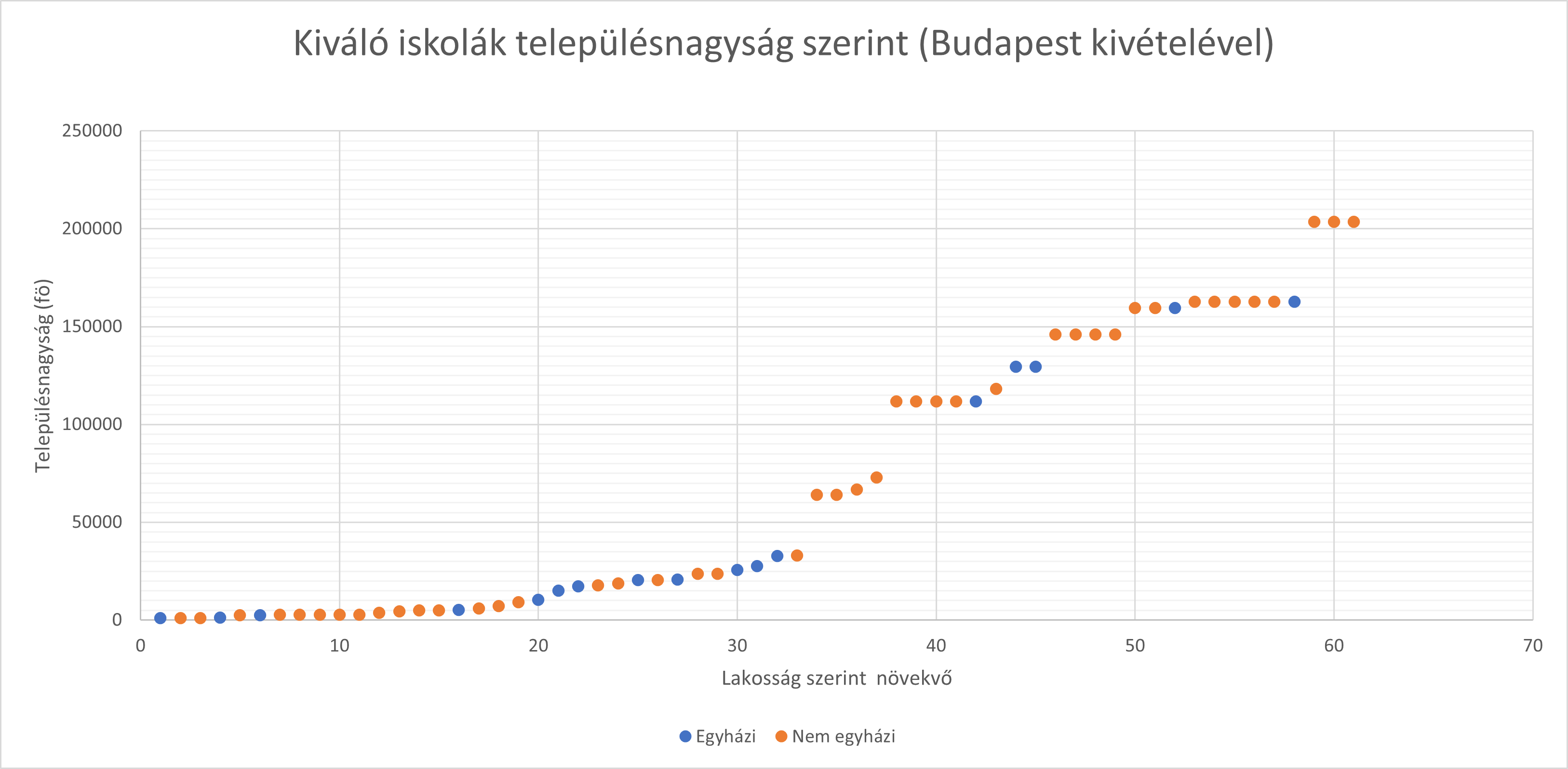 Megvizsgáltam azt is, hogy milyen lakosságszám jellemző azon településekre, ahol kiváló iskolák működnek: