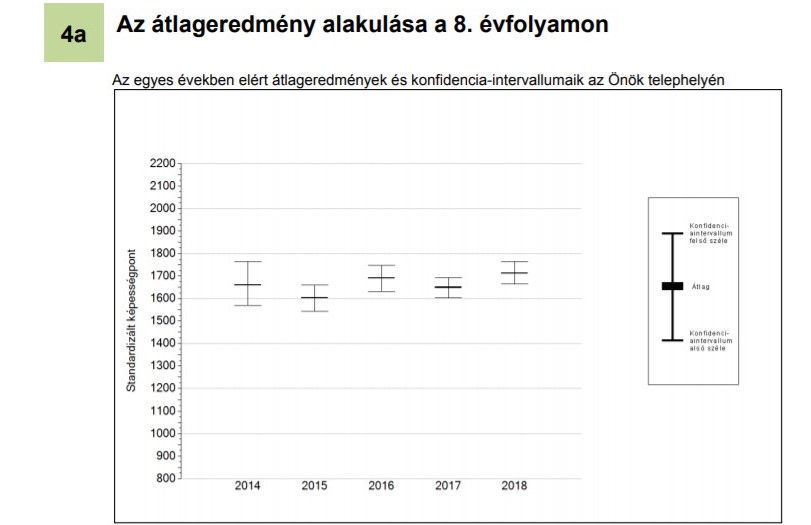 Elsőként álljon itt az általános iskolai osztály teljesítménye. Az átlagpontszám a többi városi iskolához képest szignifikánsan alacsonyabb.